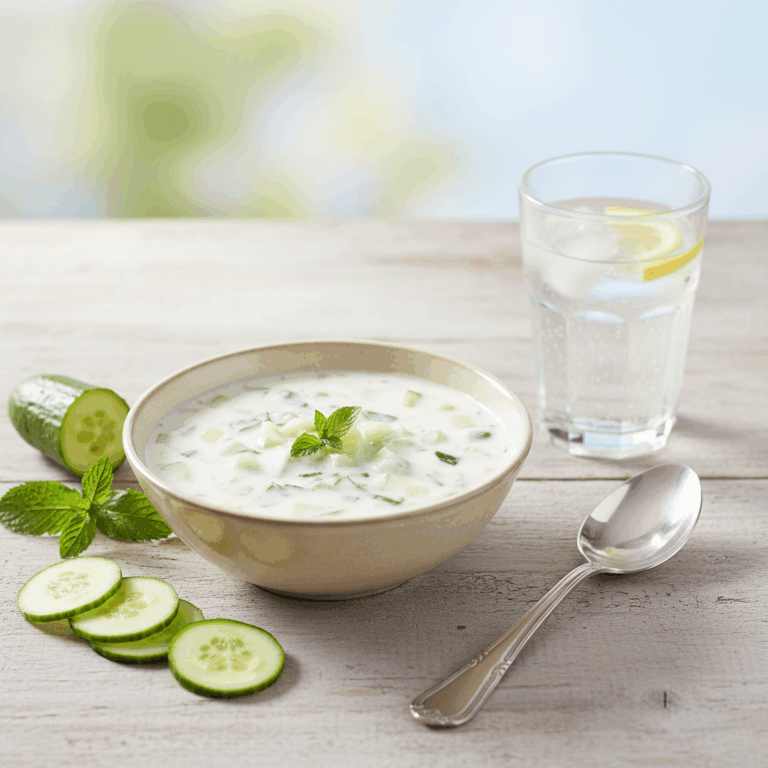 La sopa fría de pepino y yogur es una opción ideal para los días calurosos debido a su frescura y textura suave. Combina ingredientes naturales que aportan beneficios esenciales para la salud.